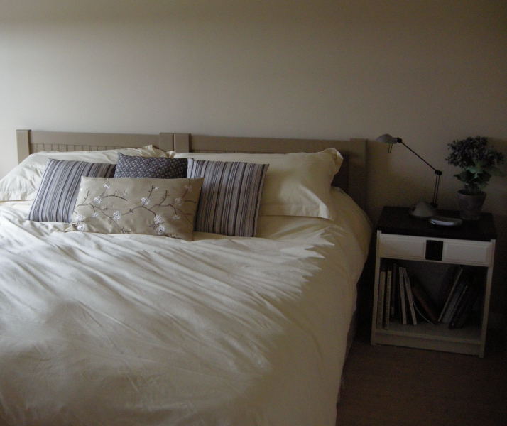 Going back in time to 2002 when we built our summer place, we constructed frames for two twin beds and purchased a bedside table from a second hand store. Functional but certainly not interesting.