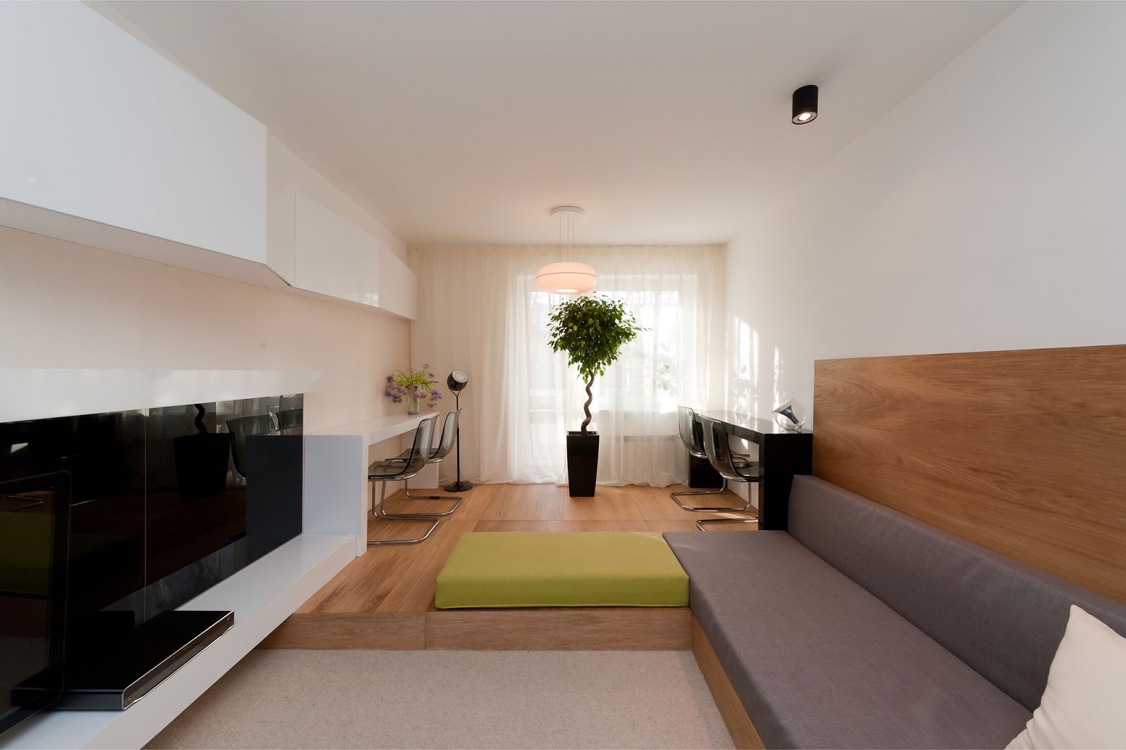 Russian design studio, SL Project, has designed the interior of the Housing Problem project.The creative interior design solutions and interesting lighting scheme makes the most of the limited living space of this apartment, located in Moscow, Russia.
